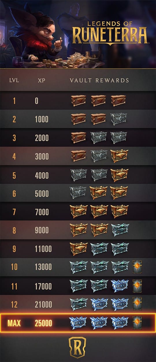 Legends of Runeterra possède son propre style de récompenses, séparé en trois catégories :