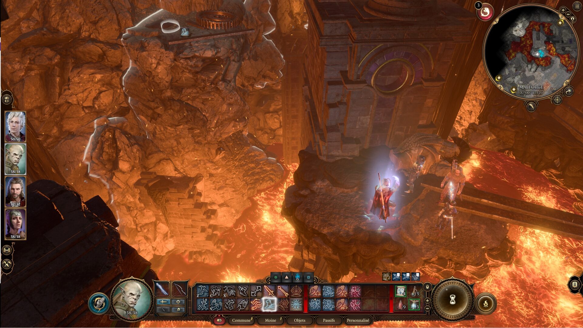 - il doit ensuite retourner dans la lave, puis retourner au milieu de la forge (pensez à actionner la roue de lave si il n'y en a plus)