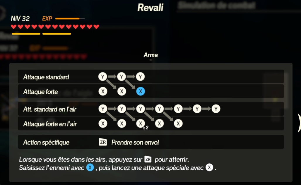 Voici les combos de Revali en l'air :