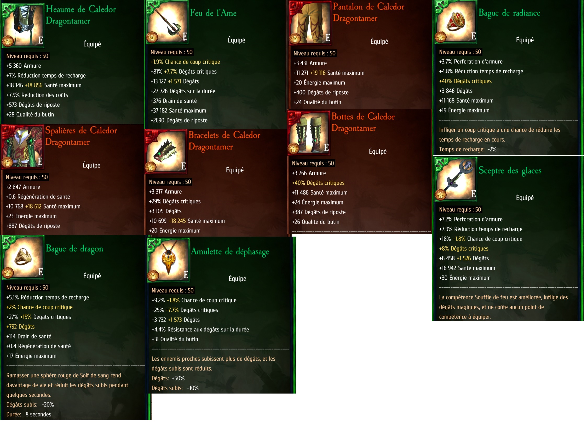 • Bague de dragon : buff défense quand sphère de sang